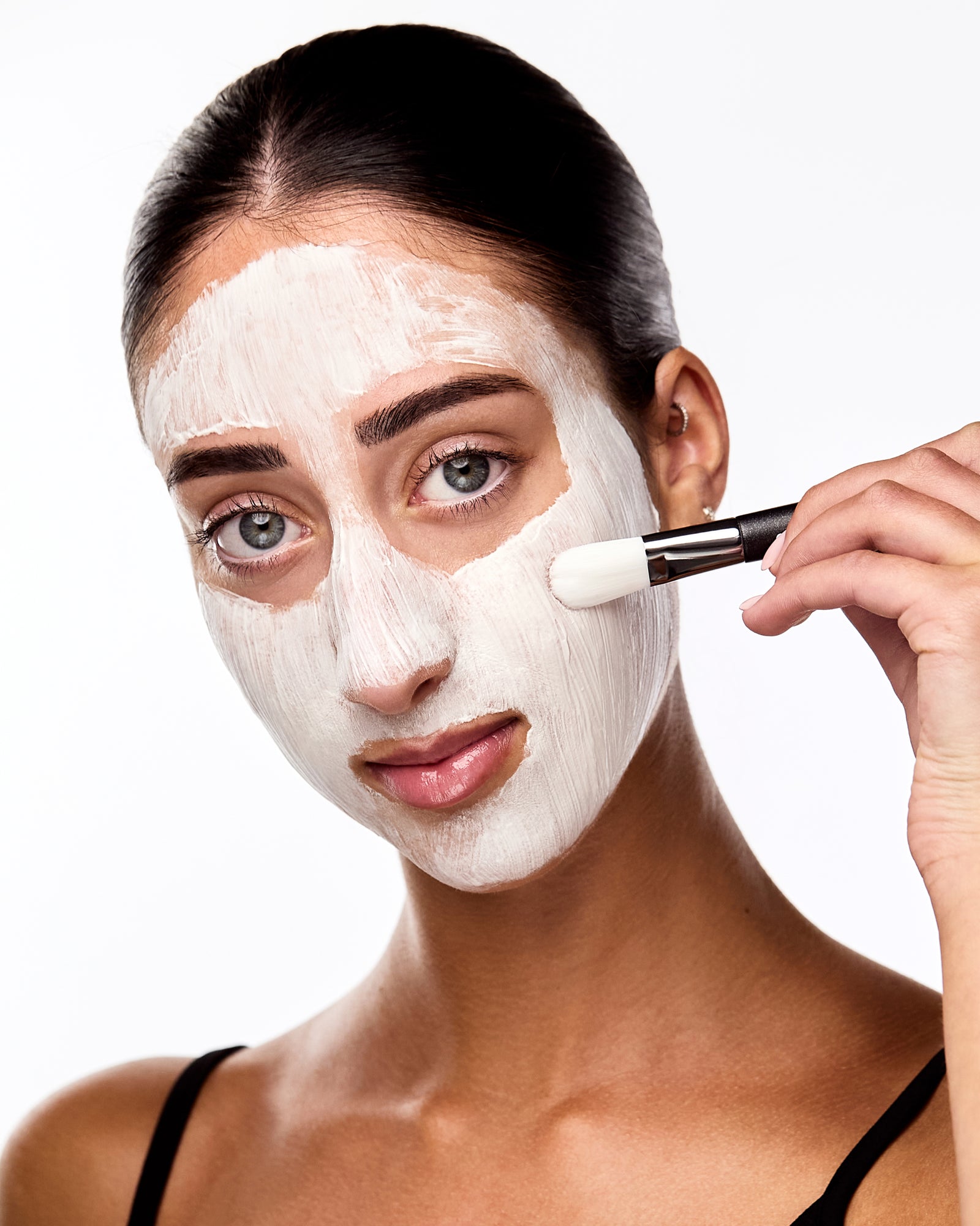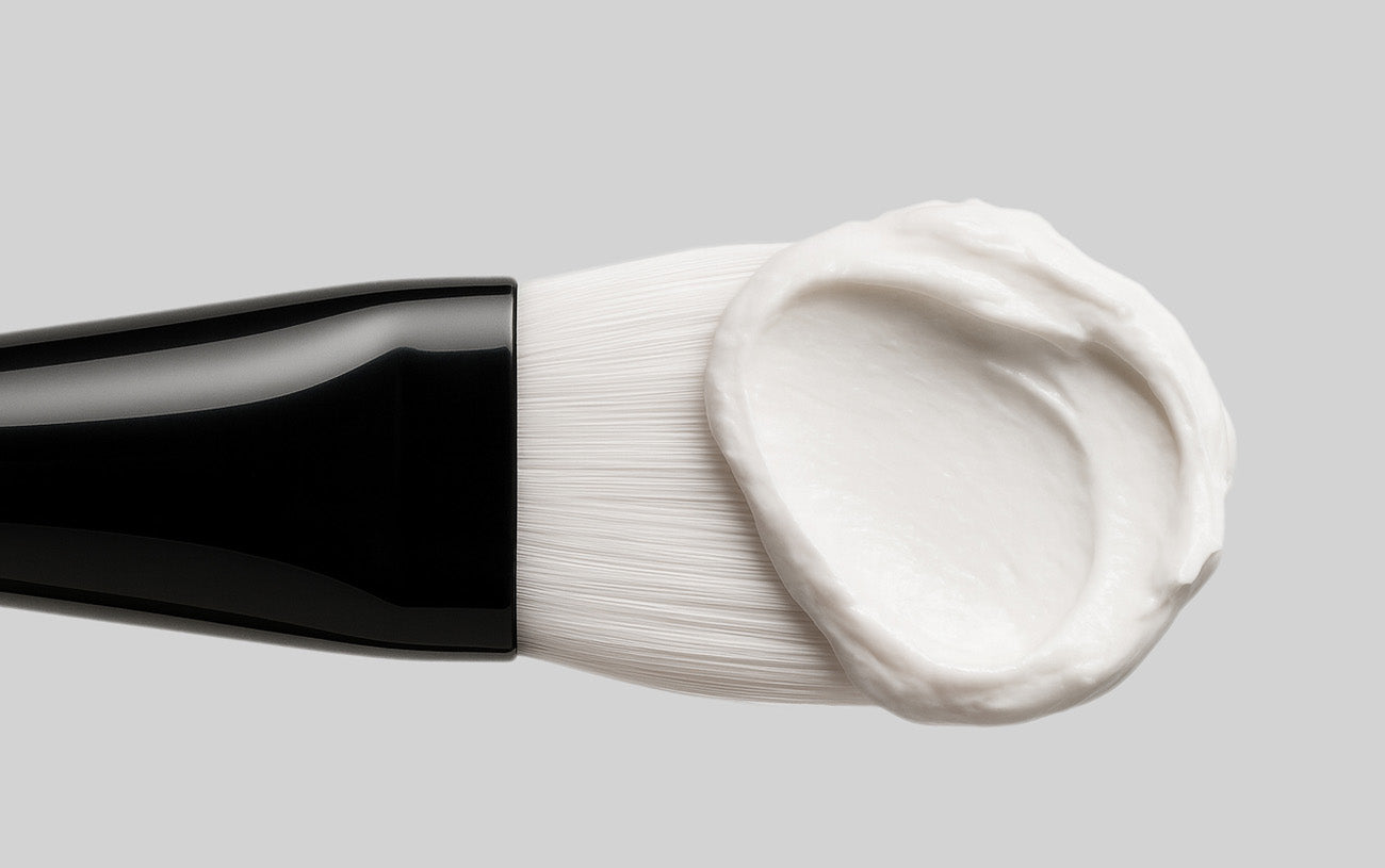 • Apply an even layer to clean, dry skin using the mask brush, avoiding the eye area
